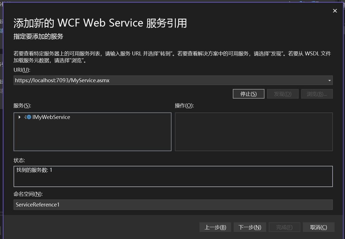 再随便新建一个项目,添加服务引用,可以看到我们建的WebService终于被别人发现了,后续就可以将之前的业务挪过来啦~~