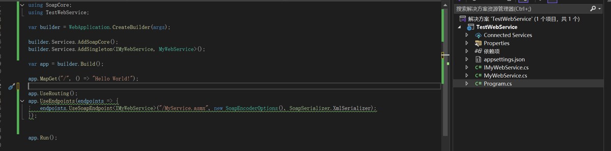 // 注册服务 builder.Services.AddSoapCore(); builder.Services.AddSingleton();