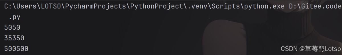 def calcsum(beg, end): # beg、end是“形式参数”(形参),相当于工厂的“原材料入口”