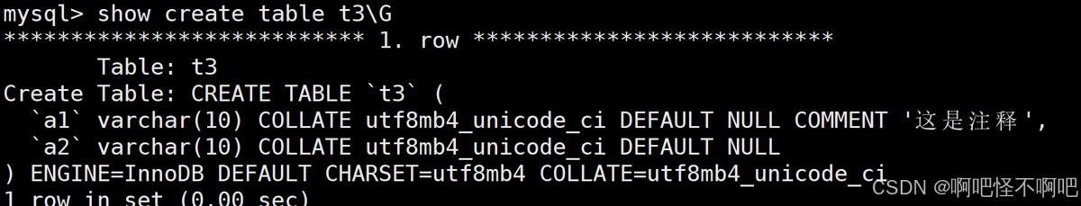 列描述:comment,没有实际含义,专门用来描述字段,会根据表创建语句保存,用来给程序员或DBA 来进行了解。简单来说就是注释。
