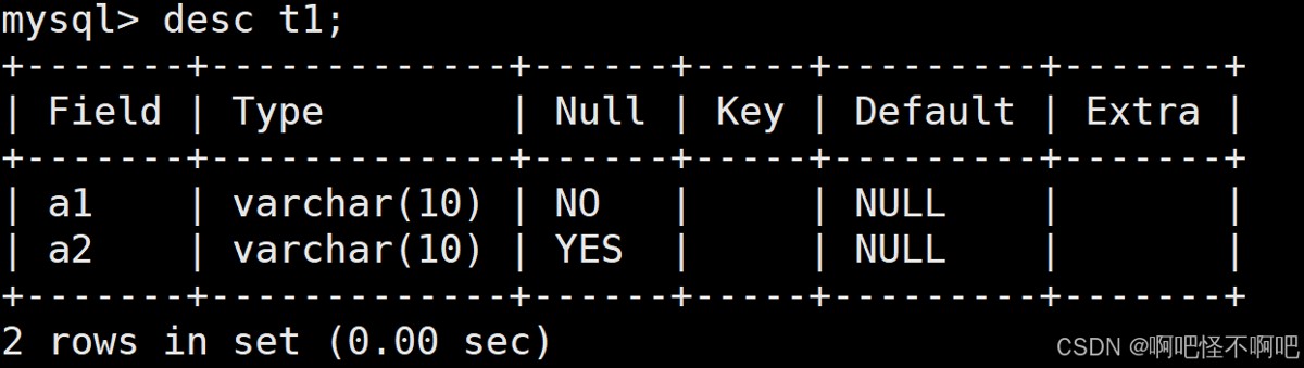 我们查看t1也可以发现在Null这一栏a1写的是NO。