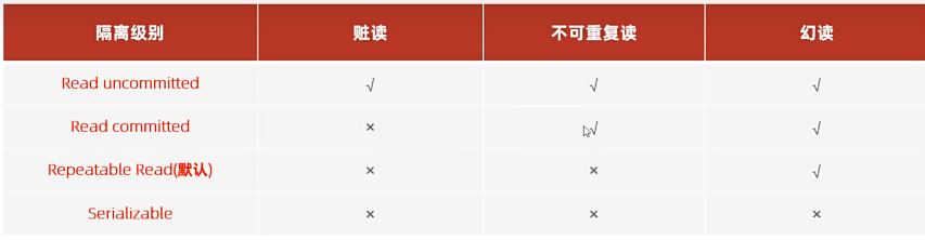 隔离级别 | 脏读(Dirty Read) | 不可重复读(Non-Repeatable Read) | 幻读(Phantom Read) |