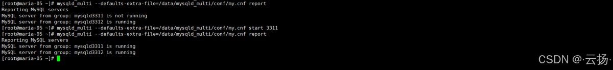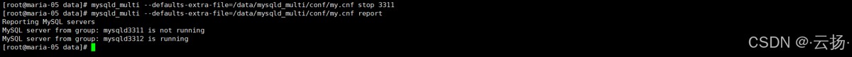 mysqld_multi支持查看实例状态、单独启停实例,运维更灵活: