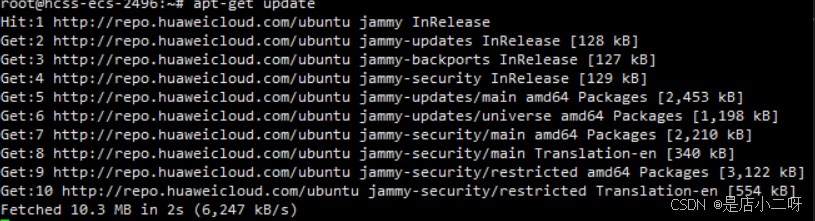 终端执行apt-get update命令后,会显示一系列的Get或Hit条目,分别代表从源服务器下载新的包信息或本地列表已是最新。最后的Reading package lists... Done表示更新过程顺利完成。