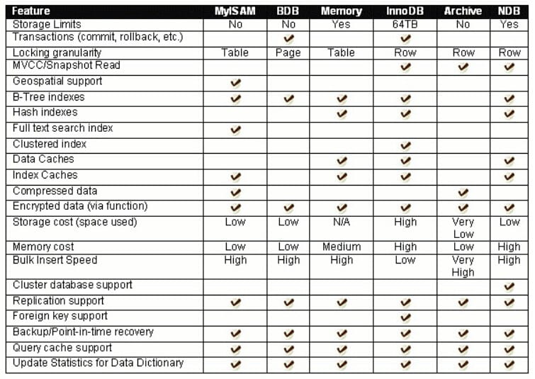 show engines;