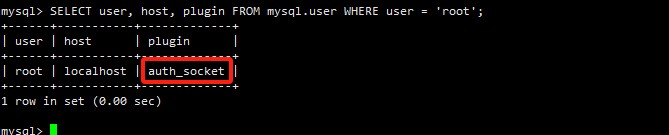 SELECT user, host, plugin FROM mysql.user WHERE user = 'root';