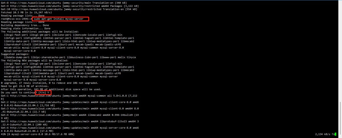 当软件包列表更新至最新状态后,便可以开始安装MySQL服务器。