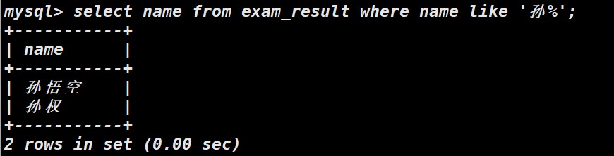 like ‘【样式】%’ 可以筛选有相似的列,如下面我们筛选了孙相关的列