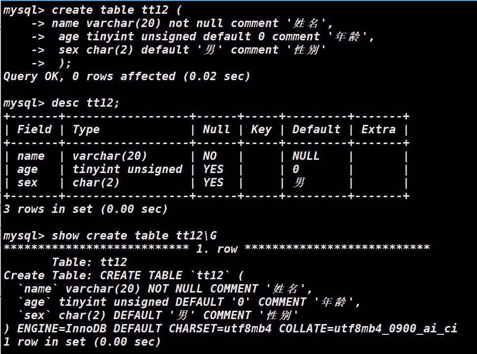 表创建的时候默认属性为null。null 表示当用户插入数据时,该字段允许为空。反之,not null 就是不允许为空