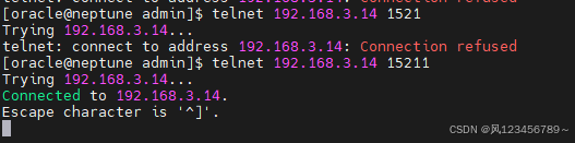 此时,查看端口  1521已不能用,15211可以。但是数据库连接不上