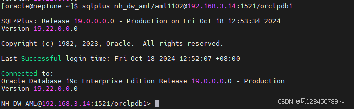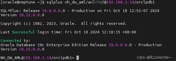 sqlplus nh_dw_aml/xxxx@192.168.3.14:1521/orclpdb1