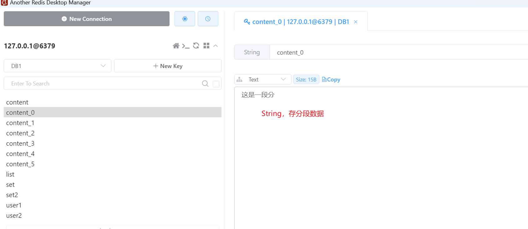 思路:将字符串分段,每一段生成一个key,然后将这些分段key再用Redis的List类型存储;获取时就先获取这些分段key,再循环去get对应的字符串,拼接起来就是完整的字符串。
