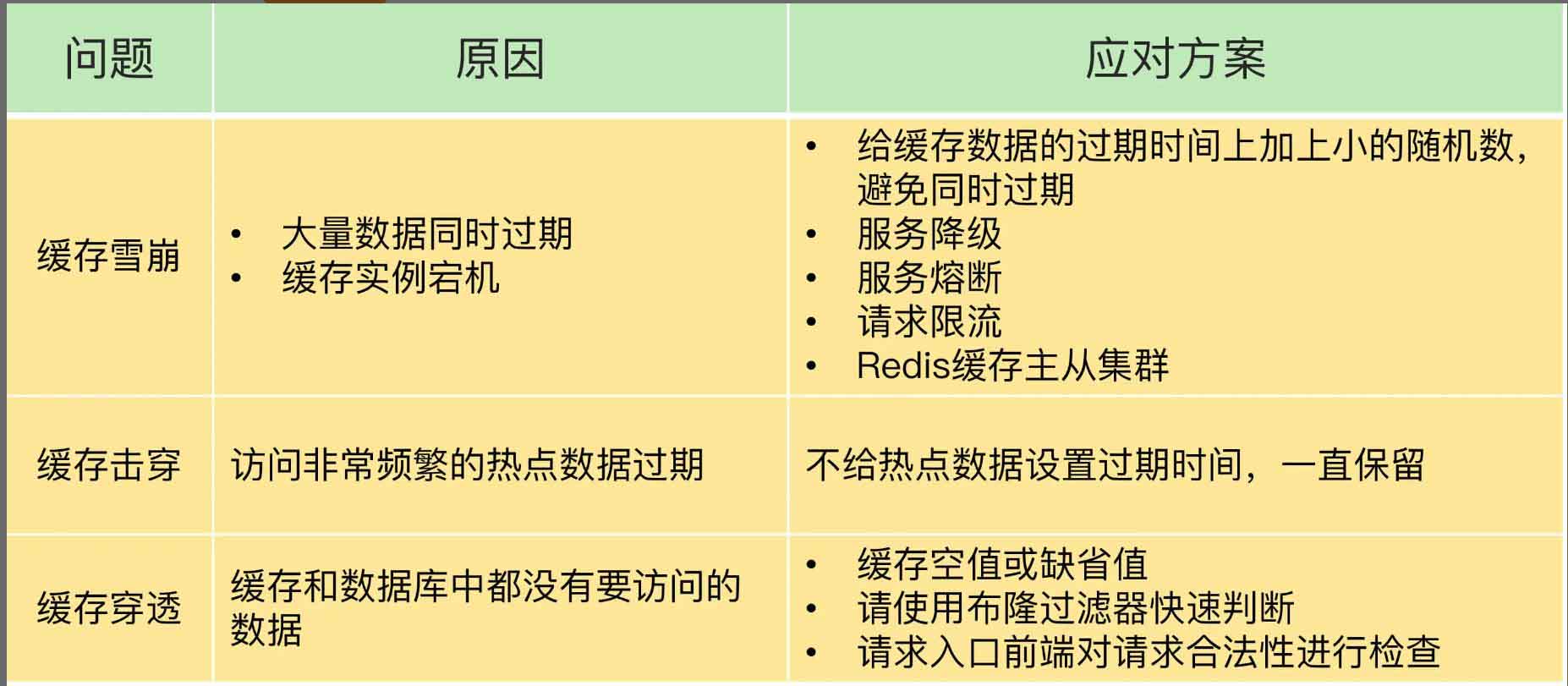 缓存穿透这个问题的本质是查询了 Redis 和数据库中没有的数据,而服务熔断、服务降级和请求限流的方法,本质上是为了解决 Redis 实例没有起到缓存层作用的问题,缓存雪崩和缓存击穿都属于这类问题。