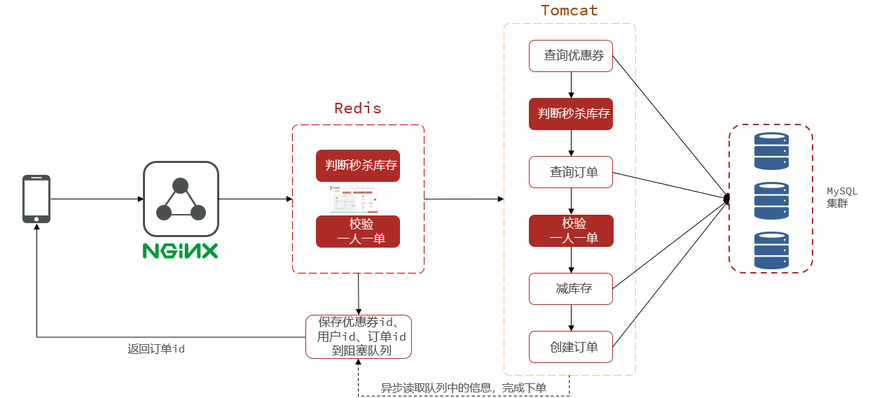 数据库操作:判断用户是否是第一单,若是则扣减库存并将订单保存到数据库。