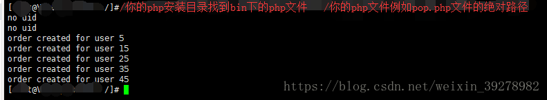 echo 'order created for user ' . $uid . "rn";