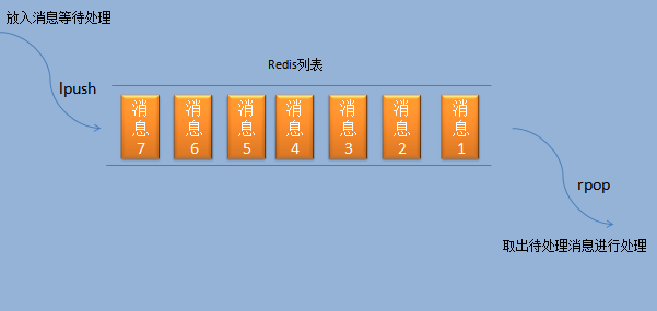 而Redis不仅可作为缓存服务器,还可用作消息队列。它的列表类型天生支持用作消息队列。如下图所示: