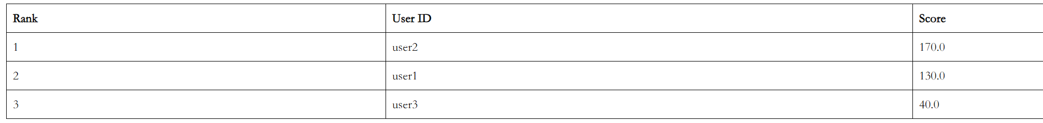print(f"Rank {entry['rank']}: UserID: {entry['user_id']} with score {entry['score']}")