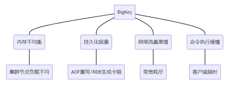 BigKey 是指 Redis 中 Value 体积异常大的 Key,通常表现为: