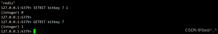 redis> SETBIT bitkey 7 1  # 设置第7位为1