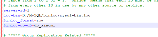 binlog-do-db=db_xiaomi	           #指定库,缩小监控的范围。
