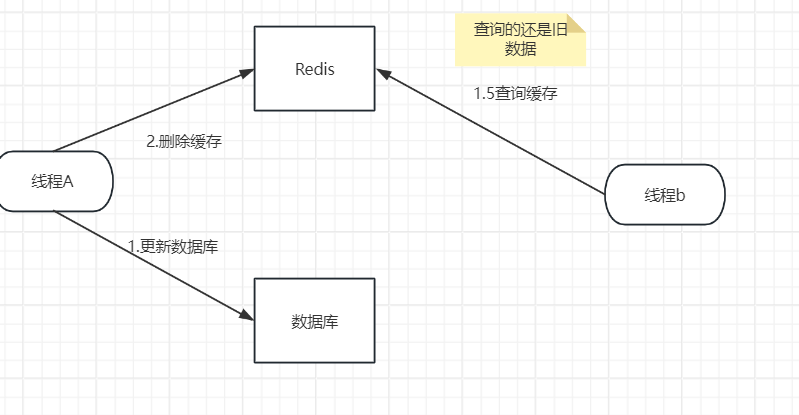 • 线程A更新数据库成功,线程A删除缓存失败;