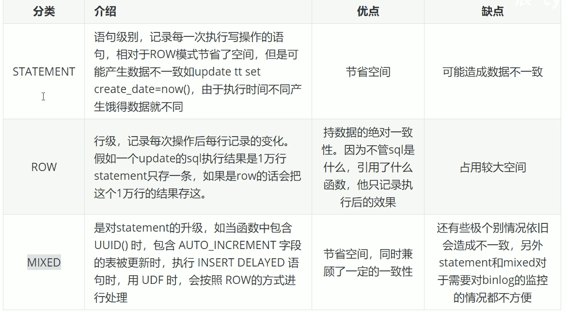 binlog_format=row	               #行级,记录每次操作后每行记录的变化。