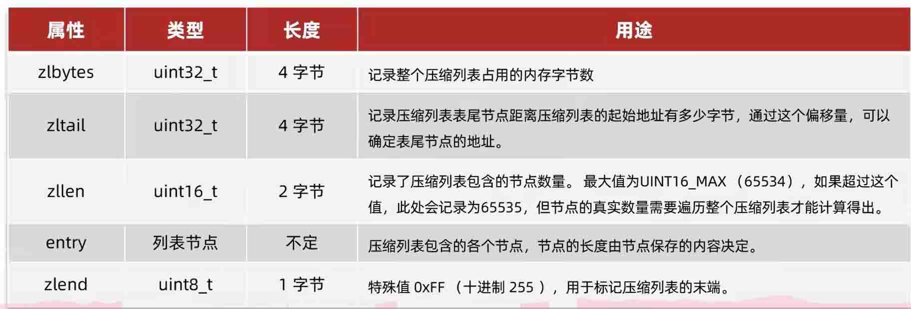 zlend:压缩列表的结束标志,并且值是固定的:0xff
