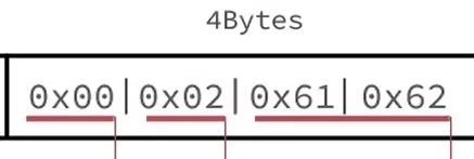 - 因为ab是字符串,并且字符串ab所占字节数为2,所以前2位是00,占字节数是2,
