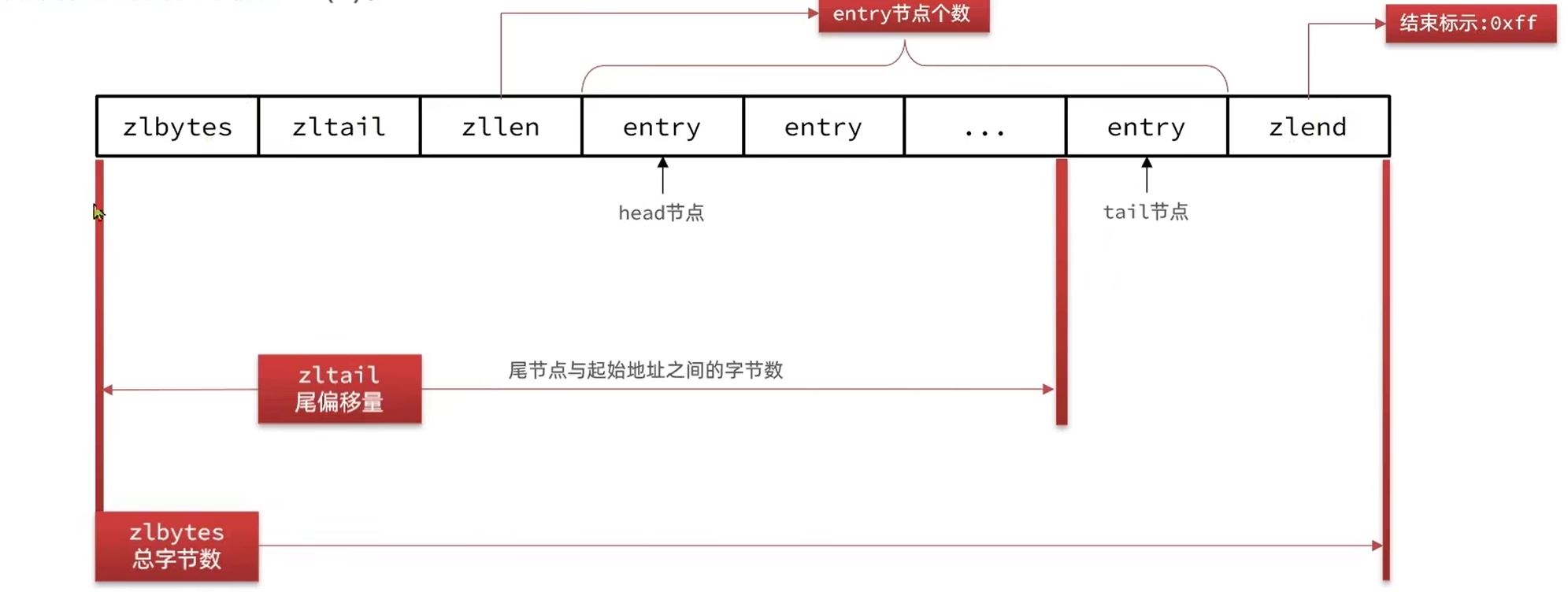 zltail:存最后一个节点到压缩列表的其实地址之间的字节数 -
