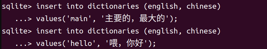 insert into dictionaries (english, chinese)values('main', '主要的,最大的');
