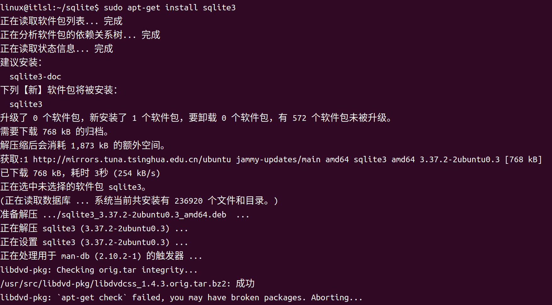安装sqlite3和安装sqlite3依赖库不是一个概念,安装sqlite3依赖库,需要执行sudo apt-get install libsqlite3-dev