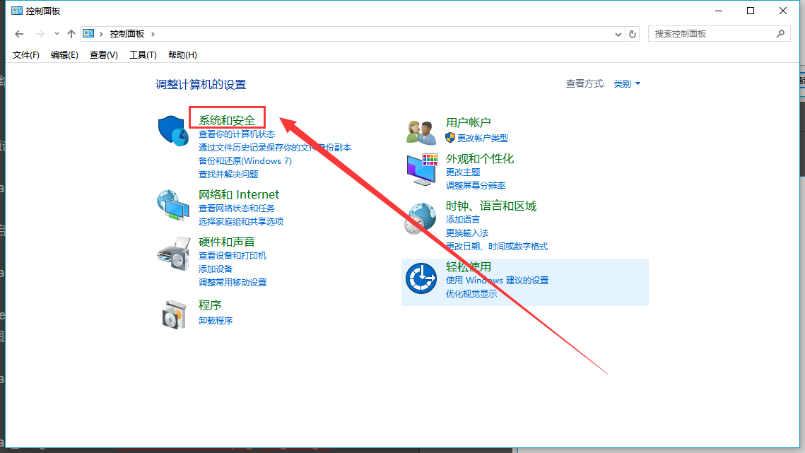 1.打开控制面板找到“系统和安全”点击打开