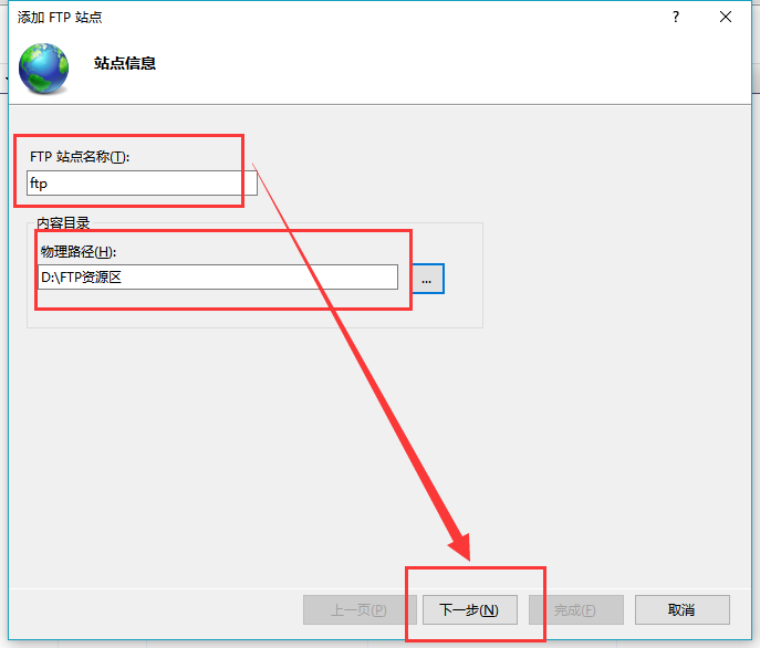 5.添加FTP站点点击下一步
