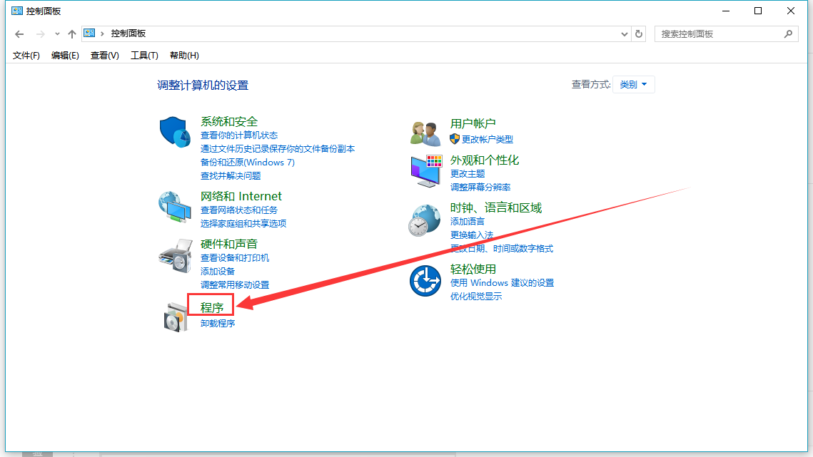 1.首先打开控制面板找到“程序”点击打开,如下图所示: