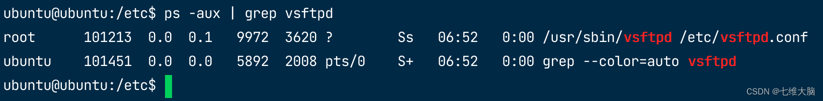 使用ps -aux | grep vsftpd 查看服务是否启动
