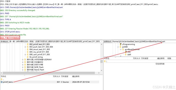 经过检验,上面修改之后,可以将文件上传到uart目录中。