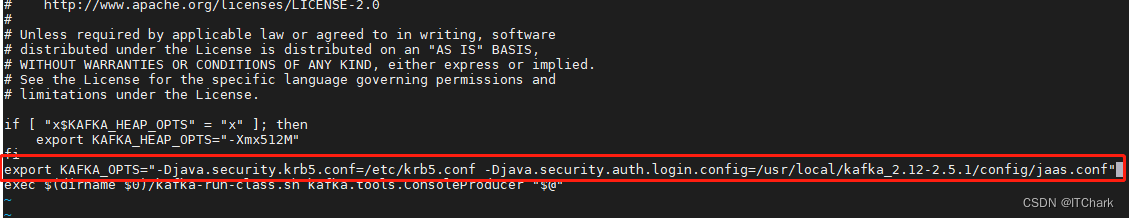 export KAFKA_OPTS="-Djava.security.krb5.conf=/etc/krb5.conf -Djava.security.auth.login.config=/usr/local/kafka_2.12-2.5.1/config/jaas.conf"