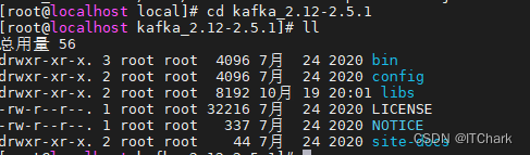 #进入压缩包存放路径 cd /usr/local/ #解压压缩包 tar -zxvf kafka_2.12-2.5.1.tgz #进入解压后目录中 cd kafka_2.12-2.5.1