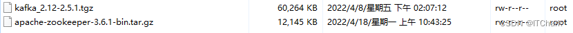 3、将下载好的kafka及zookeeper压缩包上传到虚拟机服务器,放置到/usr/local/目录中: