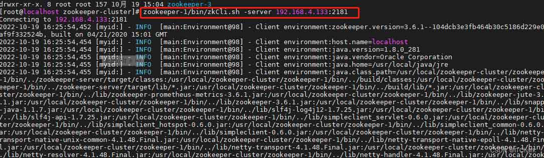 连接测试,zkCli.sh脚本可以连接集群测试是否启动成功: