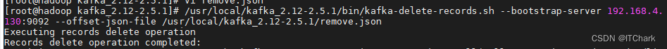 - offset:删除起始偏移量,设置为 -1,表示将删除主题中所有数据。
