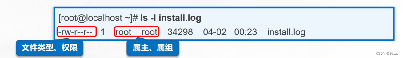 [root@localhost ~]# chmod [ugoa] [=+-] [rwx] 文件或目录... u 属主 g 属组 o 其他用户 a 所有 = 赋予...权限 + 加上...权限 - 去掉...权限 -R //递归修改指定目录下所有文件、子目录的权限