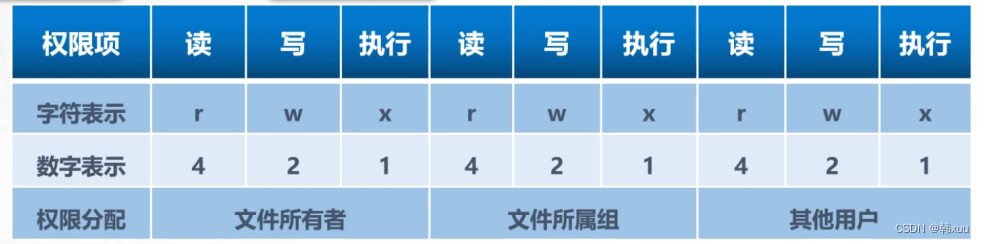 - 写入权限(w)允许修改文件内容;允许在目录中新建、移动、删除文件或子目录