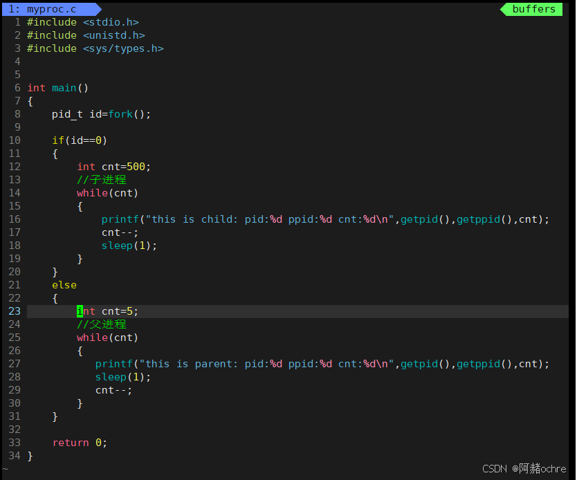 • 孤儿进程:当子进程还没退出,父进程就已经推出了,那么该子进程就会被1号进程(操作系统)领养,此时的子进程就叫做孤儿进程。