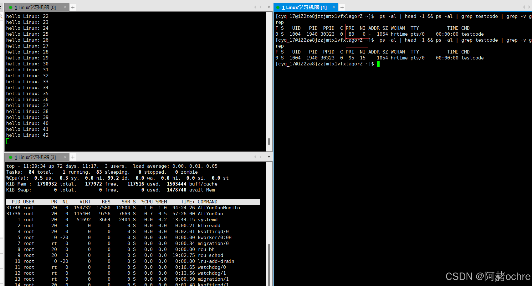 进程的优先级别越高(默认80)