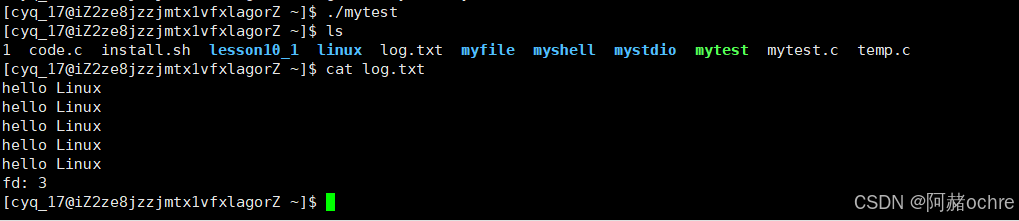 可以看到,原来要向1号文件(显示屏)打印的信息,被写入到了新打开的文件,其中,fd=1。这种现象叫做输出重定向
