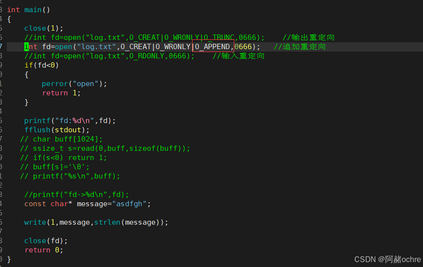 - O_CREAT : 若文件不存在,则创建它,需要使用 mode(例0666) 选项,来指明新文件的访问权限