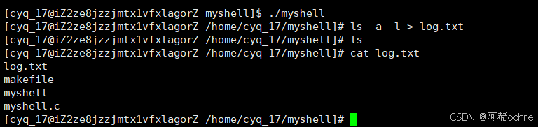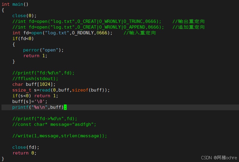 - 原本向显示屏打印的内容被写入到log.txt文件中
