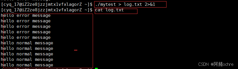 - stdout和stderr对应的硬件设备都是显示屏,访问的都是同一个文件(引用计数)