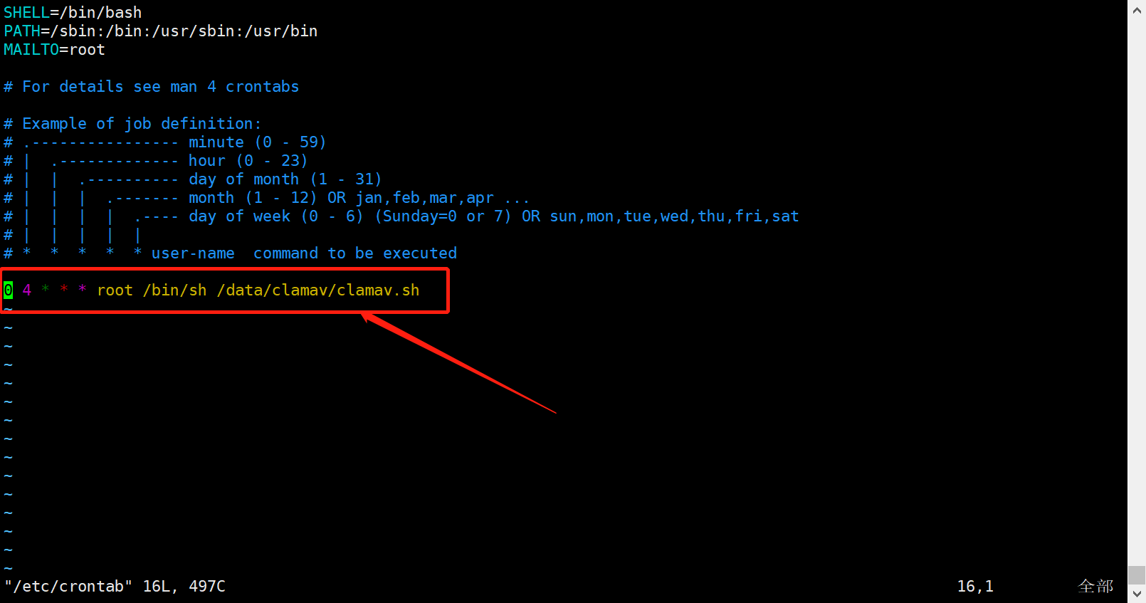 0 4 * * * root /bin/sh /data/clamav/